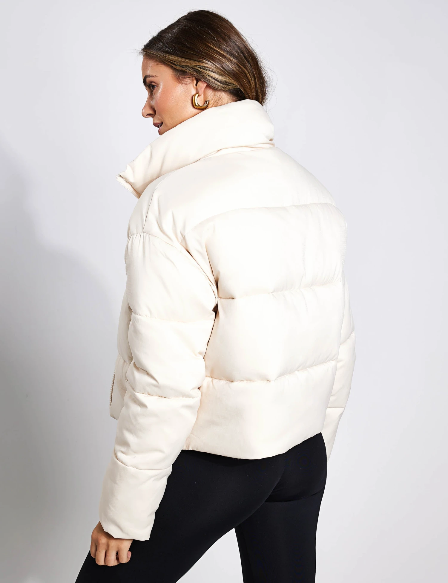 Just like a warm hug. Girlfriend Collective’s Cropped Puffer jacket in Snow keeps you cosy, dry and warm on the wettest of days. Throw yours on and stay protected between studio sessions.