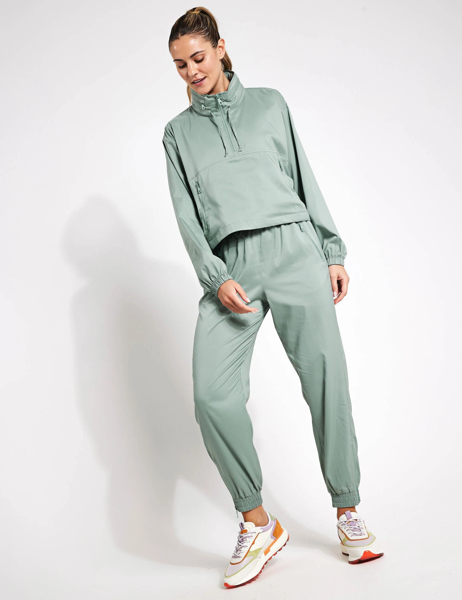 Keep dry no matter the weather in the Half Zip Hummingbird Windbreaker. This jacket is perfect for any adventure with a stowable hood, cinchable waist, and a convenient zip kangaroo pocket. Designed with a cropped length for added style while out and about.