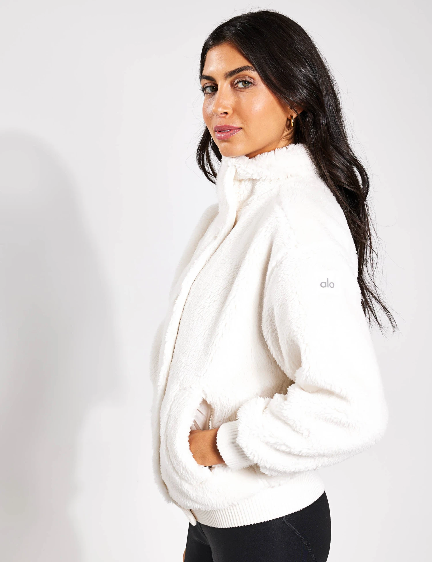 Feed your sherpa obsession with Alo Yoga’s stylish Sherpa Varsity Jacket in Ivory. Designed with an oversized collar and French terry lining that’s touchably soft.