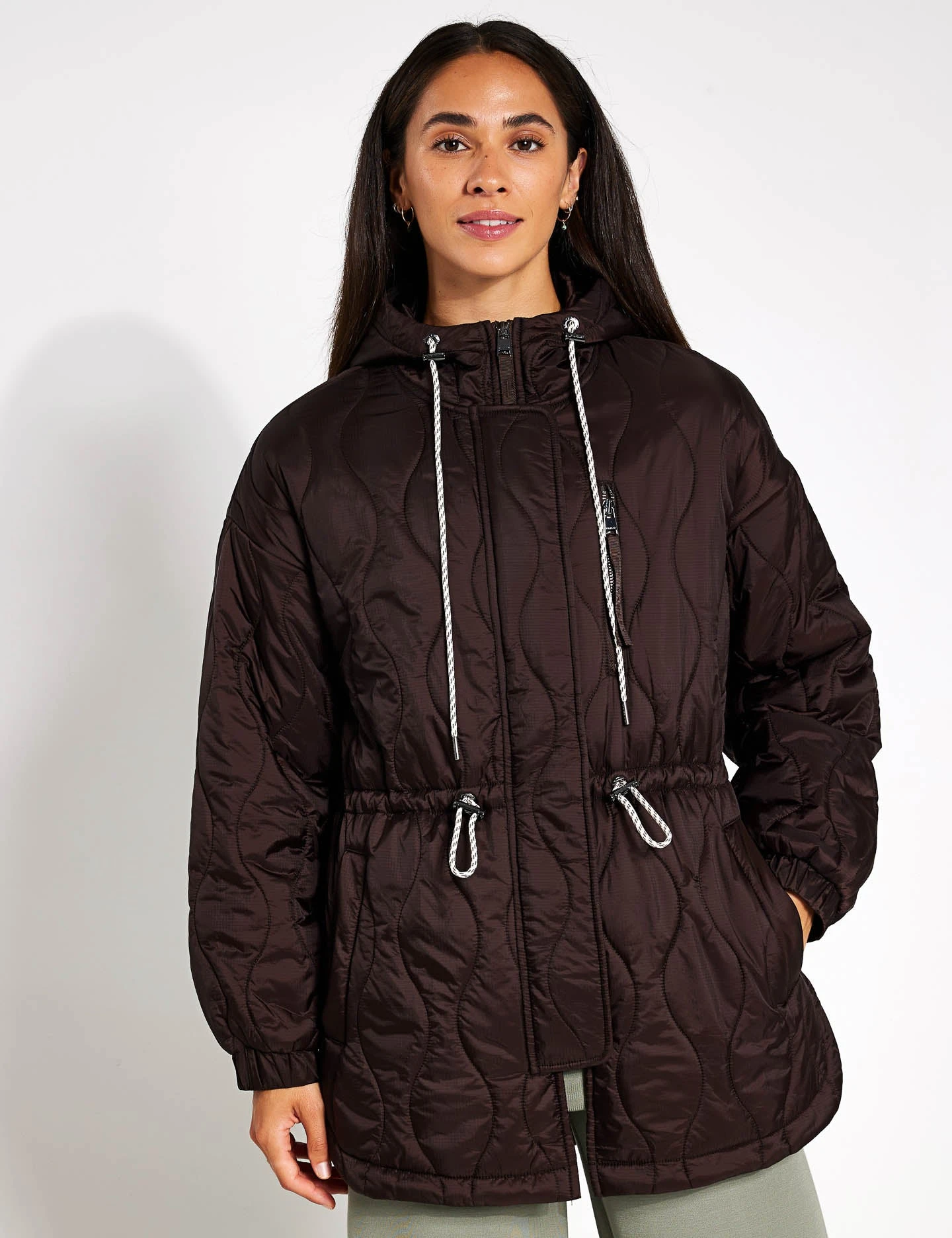 Embrace the outdoors in style with the Caitlin Quilt Jacket. Whether rain or shine, the hood offers added protection, while the adjustable waist ensures a perfect fit for every adventure. With a uniquely shaped hem and elasticated cuffs, you can conquer any adventure with ease.